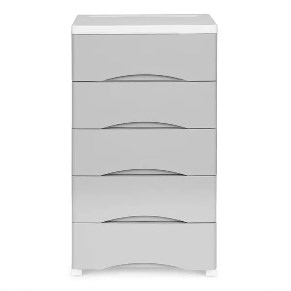 A tartós műanyag szerkezet stabil használatot biztosít, az öt kihúzható fiók pedig kényelmes hozzáférést ad a kozmetikumokhoz, játékokhoz, kreatív eszközökhöz vagy egyéb kisebb tárgyakhoz. A formázott fogantyúk megkönnyítik a fiókok nyitását és zárását.