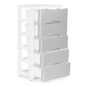 5 fiókos gurulós műanyag tárolópolc szürke-fehér