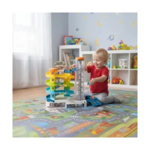 Ez az 5 szintes, interaktív játék parkolóház igazi „városi” élményt ad a gyerekeknek: az autók a spirál lifttel feljutnak a felső szintre, majd a pályán körbe-körbe gurulva visszaérnek a felvonóhoz. A játék remekül fejleszti a finommotorikát, a szem–kéz koordinációt és a képzelőerőt, miközben a közlekedési helyzetekkel is megismerteti a kicsiket.
