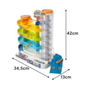 A spirál lift kézi vezérléssel vagy elemes működtetéssel is használható (3×AA elem szükséges, nem tartozék), így a gyerek a saját tempójához igazíthatja a játékot.