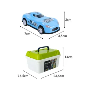 50 darab színes, hátrahúzós kisautó egy könnyen hordozható bőröndben, így otthon és utazáskor is gyorsan rendet tarthatsz. Elem nélkül működik, a tartós fém-műanyag kivitel pedig hosszú játékidőt ad, miközben a gyerekek kézügyessége és képzelőereje is fejlődik.