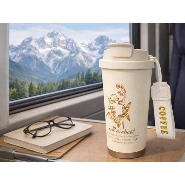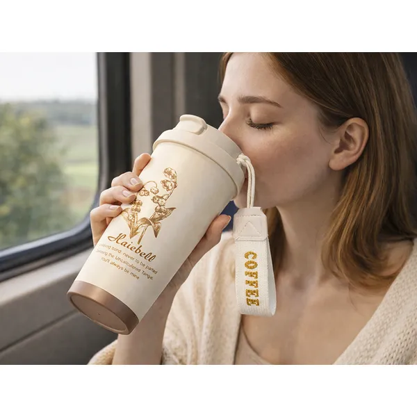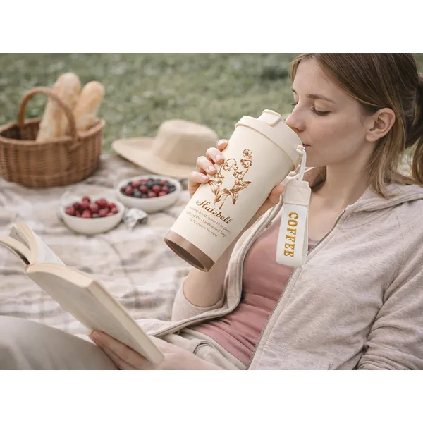 530 ml szívószálas termoszbögre acél fogantyúval, krémszínű