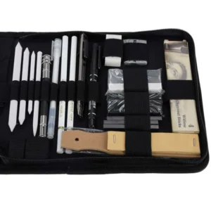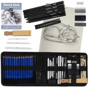 Lépj be a vázlatok világába, ahol a grafitceruzák, a szén és a kiegészítők együtt dolgoznak a képzeleteddel. Ez az 54 darabos rajz- és vázlatkészlet átgondolt, kompakt összeállítás, amelyben mindent egy helyen találsz: változatos keménységű ceruzákat, satírozó eszközöket, korrekcióhoz való radírokat, valamint egy A5-ös vázlatfüzetet (20 lap) és egy praktikus, rendezett tárolást biztosító tokot.