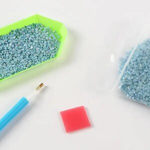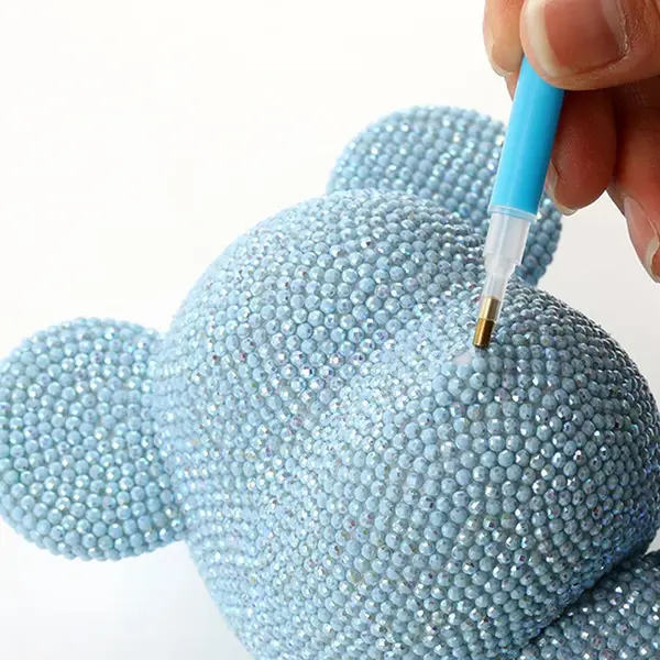 A készlet alapja a mackó figura, amely tartós anyagból készült, így stabil és kényelmes vele dolgozni. A színes „gyémánt” kövek ragyogó felületet adnak, a kiegészítők pedig segítenek abban, hogy a kövek rendezettek maradjanak, és pontosan a helyükre kerüljenek.
