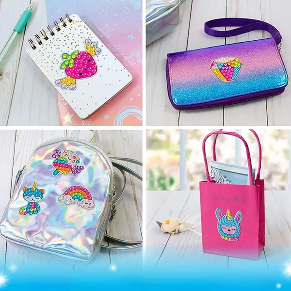 Fedezd fel a kreatív alkotás csillogó világát ezzel a 5D gyémántmozaik matrica készlettel! A gyerekek színes „gyémántkövekkel” díszíthetik a mintákat, és látványos, fényes felületű matricákat készíthetnek, amelyeket később bárhová felragaszthatnak.