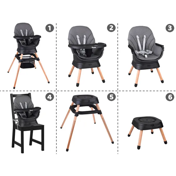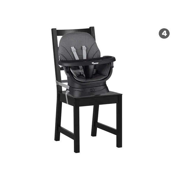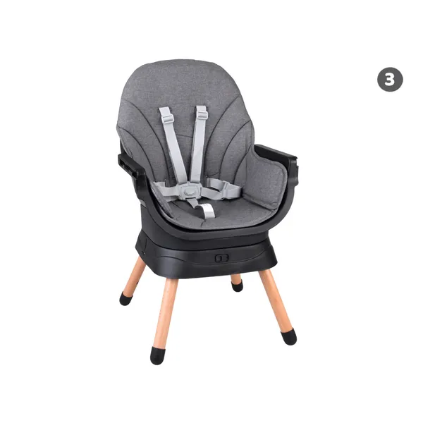 Egyetlen bútordarab, amely etetőszékként, székmagasítóként és zsámolyként is helytáll, így helyet és pénzt spórolsz, miközben a 360°-os forgó ülés, a mosható huzat és az állítható tálca gondoskodik a baba biztonságáról és a könnyű takarításról.