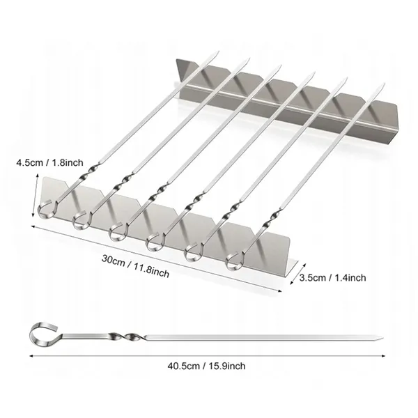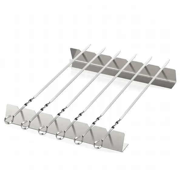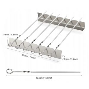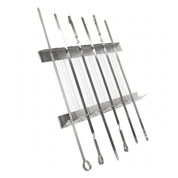Rozsdamentes acél nyárs készlet praktikus tartóállvánnyal és hordtáskával. Ideális grillezéshez és szalonnasütéshez: a stabil állvány segít rendezett, kényelmes sütési felületet kialakítani, a táska pedig megkönnyíti a tárolást és a szállítást.