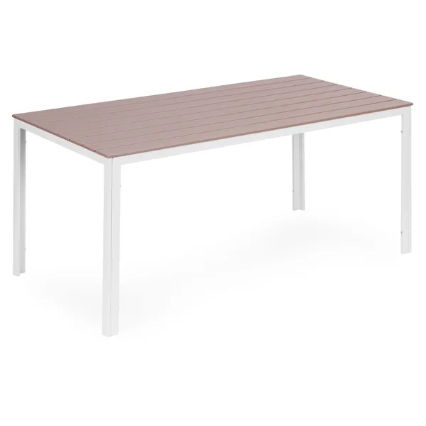6 személyes kerti asztal 156×78 cm polywood lappal, bézs-fehér