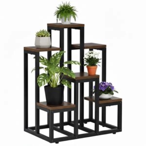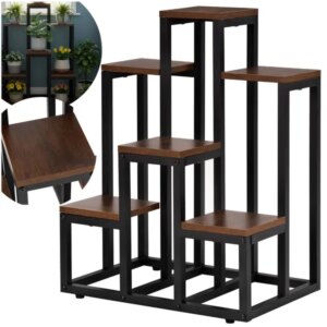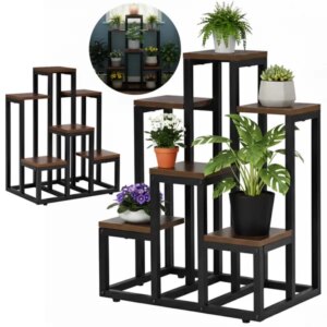 Stílusos, helytakarékos virágtartó állvány, amely a fa és a fém kombinációjával stabil alapot ad növényeinek. A 6 különálló polc segít átláthatóan elrendezni cserepes virágait, fűszernövényeit vagy dekorációit otthon, erkélyen vagy fedett teraszon.
