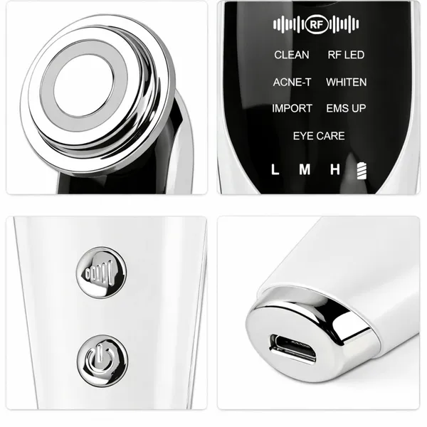 Ez a 7 az 1-ben arcmasszírozó otthoni arc- és szemkörnyékápoláshoz készült. A készülék 7 üzemmódot és 3 intenzitási szintet kínál, miközben LED fényterápiát, kozmetikum-bejuttatást támogató funkciót és EMS izomstimulációt egyesít. Akkumulátoros működésének köszönhetően kényelmesen használható vezetékek nélkül.