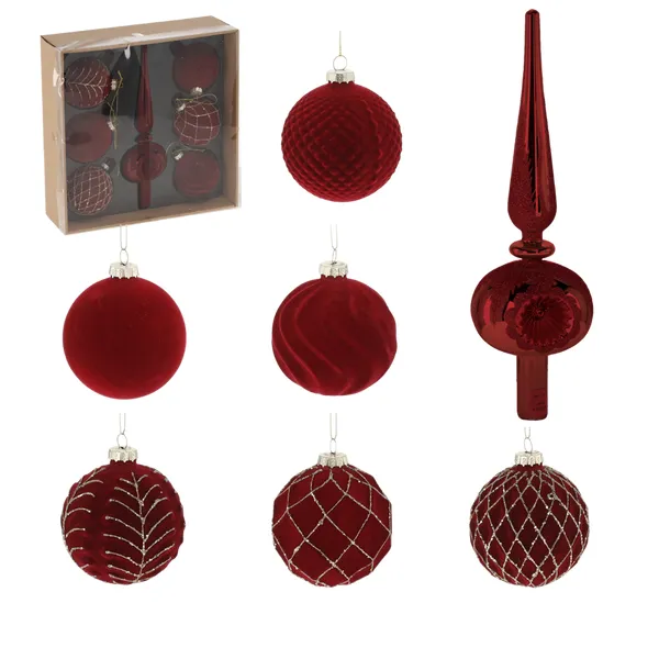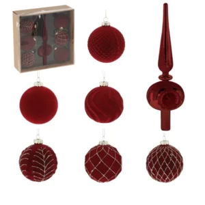 7 darabos karácsonyfadísz készlet, sötétpiros, 29×29×9,5 cm