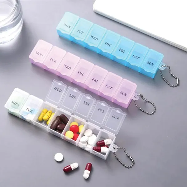 A 7 napos gyógyszer-adagoló doboz praktikus megoldás mindazok számára, akiknek rendszeresen, pontos időben kell bevenniük a gyógyszereiket – legyen szó nyaralásról, üzleti útról vagy a mindennapokról.