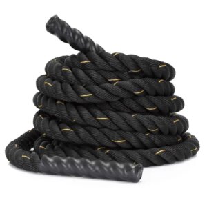 Masszív, 9 méteres edzőkötél csúszásmentes fogantyúkkal a biztos fogásért és intenzív, egész testes edzésekhez. A védőhüvely a dörzsölődésnek kitett részeket óvja, így tartósabb és megbízhatóbb használatot ad otthon vagy edzőteremben.