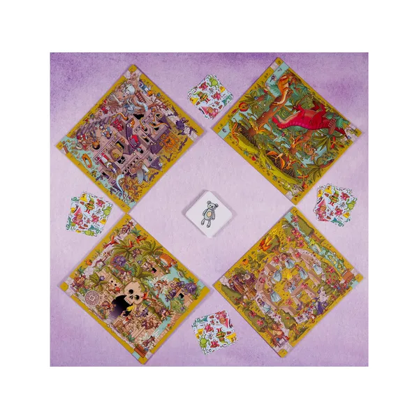 Készülj fel egy színpompás kalandra A képzelet birodalmában című családi megfigyelő társasjátékkal! Villámgyors detektívekként versengtek, hogy elsőként találjátok meg a kártyákon szereplő rejtett tárgyakat a részletgazdag, fantasztikus helyszíneken – dinoszaurusz-dzsungelben, állatok lakta nagyvárosban vagy varázslatos víz alatti királyságban.