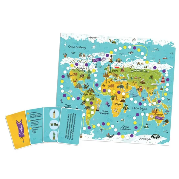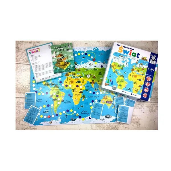 Induljatok képzeletbeli világ körüli útra, ahol kontinenseket, szigeteket és óceánokat átszelve fedezhetitek fel a Föld legizgalmasabb helyeit. A 6–99 éves korosztály számára készült A világ társasjáték egy pörgős kvíz-verseny, amelyben a gyors és helyes válaszok, valamint a szemfüles megfigyelés visznek közelebb a célba.