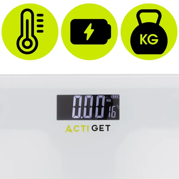 Az Actiget® digitális fürdőszobamérleg letisztult, fehér dizájnjával és edzett üveg felületével stílusos és megbízható választás a mindennapi súlyméréshez. A mérleg automatikusan bekapcsol, amikor rááll, a stabilizált mérésnek köszönhetően pedig mindig biztos leolvasást ad.