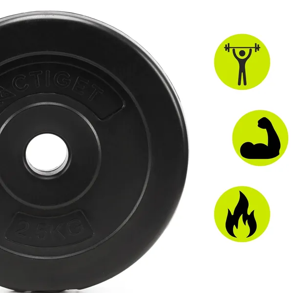 Az Actiget kompozit súlytárcsa 2,5 kg ideális választás otthoni és teremhasználatra is, ha tartós, esztétikus és könnyen kezelhető tárcsát keresel. A PP külső bevonat védi a felületet, a cement töltet pedig stabil, megbízható terhelést biztosít az edzéseidhez.