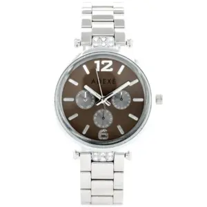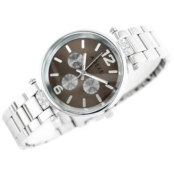 Adexe női кварc karóra, barna számlap, ezüst fém szíj, WR30