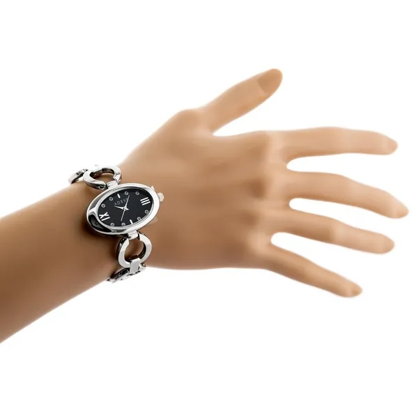 Elegáns, könnyen kombinálható női karóra fekete számlappal és ezüstszínű fém szíjjal, amely stílusos megjelenést ad a hétköznapokon és alkalmakra is. A japán Miyota кварc szerkezet pontos működést, az ásványi üveg pedig megbízható védelmet biztosít a mindennapi használat során.