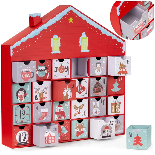 24 rekeszes, masszív papír adventi naptár, amelyet saját meglepetésekkel tölthetsz meg, így minden nap személyes ajándék vár. A stabil, vastag falú kialakítás és a vidám, egyedi képek ünnepi hangulatot teremtenek otthon vagy ajándékként.
