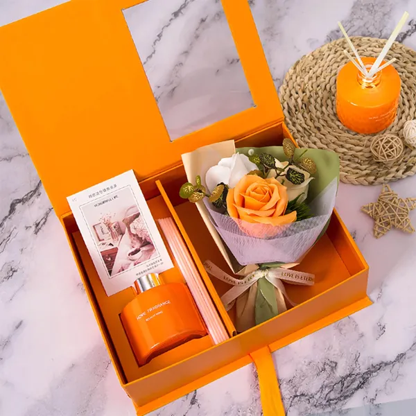 • Komplett ajándékcsomag: pálcikás illatdiffúzor + szappanrózsák