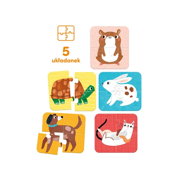 Állatos puzzle készlet gyerekeknek – 5 db, 4 darabos kirakók, 2+ év