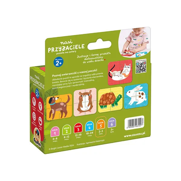 Tedd még élvezetesebbé a közös játékidőt, és engedd, hogy gyermeked büszkén illessze össze a négydarabos állatkás kirakókat!