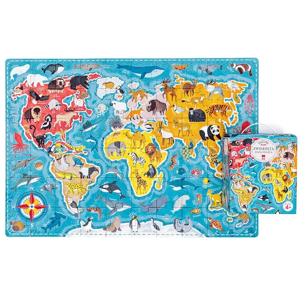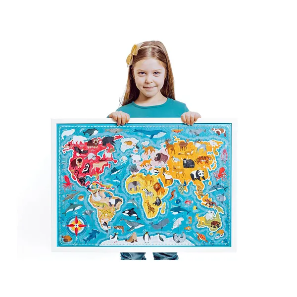 Fedezzétek fel együtt a Föld állatvilágát ezzel a nagyméretű, 60 darabos kirakóval! A 48 cm × 68 cm-es világtérkép kontinensenként mutatja be a legérdekesebb halakat, madarakat és emlősöket, így gyermeke egyszerre szórakozik és tanul.