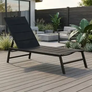 Állítható kerti napozóágy, amely ideális választás a kertbe, teraszra vagy erkélyre. Kényelmes pihenést biztosít napozáshoz, olvasáshoz vagy egy délutáni szundításhoz, miközben letisztult megjelenésével könnyen illeszkedik a kültéri környezetbe.