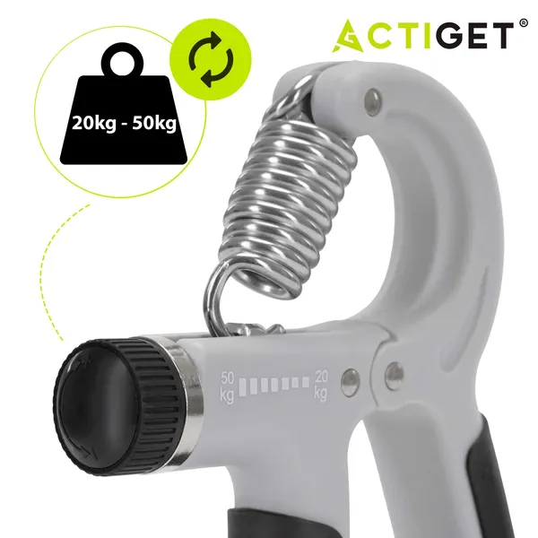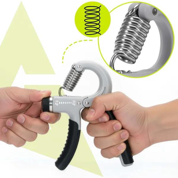 Fokozatos kéz- és alkarerősítés egyetlen eszközzel: a tekerőgombbal 20–50 kg között gyorsan állítható az ellenállás, így kezdőknek és haladóknak is kényelmes. A csúszásgátló markolat stabil fogást ad, ezért otthon, irodában vagy rehabilitációhoz is praktikus.