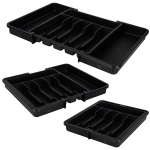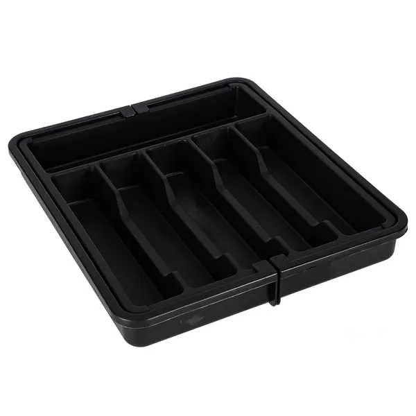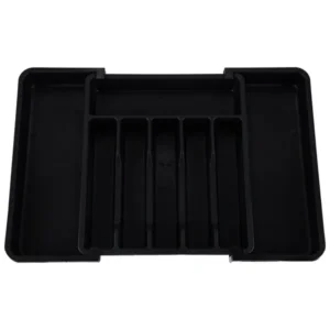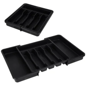 Élvezd a tökéletesen rendszerezett konyhát a kihúzható, 33–56 cm-re állítható evőeszköztartóval, amely 8 rekeszben tartja kéznél a kanalakat, villákat és konyhai eszközöket. Tartós, fekete műanyag kialakítása védi a fiókot a karcoktól, és pillanatok alatt tisztítható.