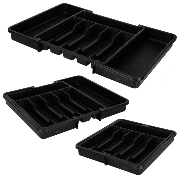 Állítható, kihúzható evőeszköztartó fiókbetét, 33–56 cm, fekete