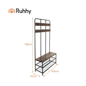 Álló előszobai fogas cipőtartóval és ülőpaddal, 12 akasztó, 182 cm