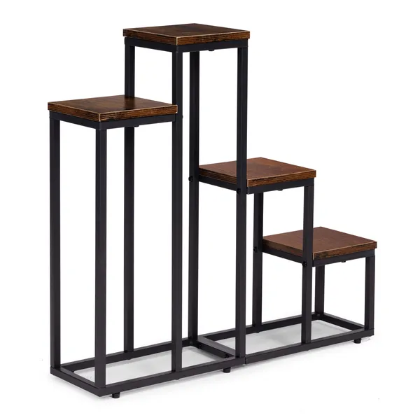 Az elegáns loft stílusú tartó négy polcán harmonikusan rendezheted növényeidet, miközben a porszórt acélváz stabil tartást ad és a csúszásgátló lábak védik a padlót. Kompakt mérete helytakarékosan illeszkedik nappaliba, folyosóra vagy irodába.