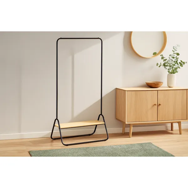 Adj loftos karaktert otthonodnak ezzel az 1 polcos, szabadon álló ruhafogassal, amely egyszerre helytakarékos és dizájnos.