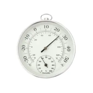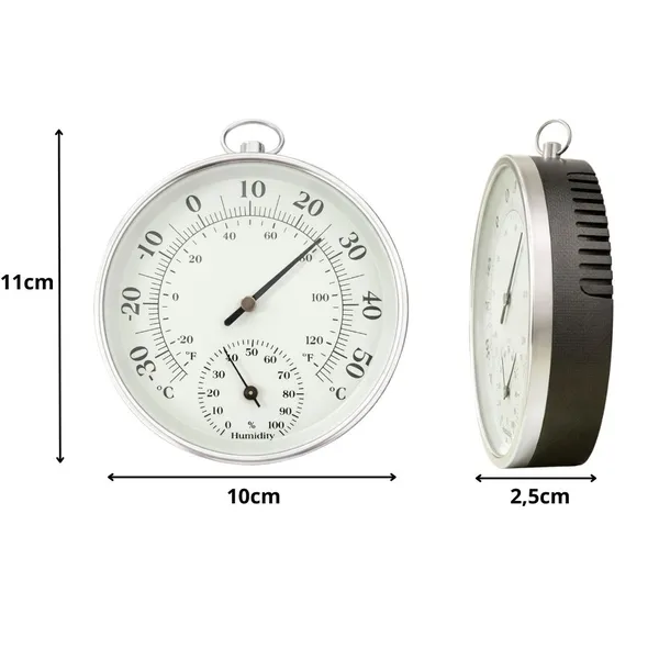 Analóg fali hőmérő és higrométer egyben, amely egyszerre mutatja a hőmérsékletet és a levegő páratartalmát. A jól áttekinthető számlapnak köszönhetően gyorsan ellenőrizheti az aktuális értékeket, így könnyebben tartható a komfortos beltéri klíma otthon vagy a munkahelyen.