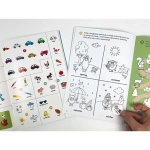 Játékos, képekre épülő angol szótanulás 3–5 éveseknek: színezők, keresők, labirintusok és szójátékok segítik, hogy az első mindennapi szavak gyorsan rögzüljenek. A színes matricák még interaktívabbá teszik a foglalkozást, miközben a finommotorikát is fejlesztik.