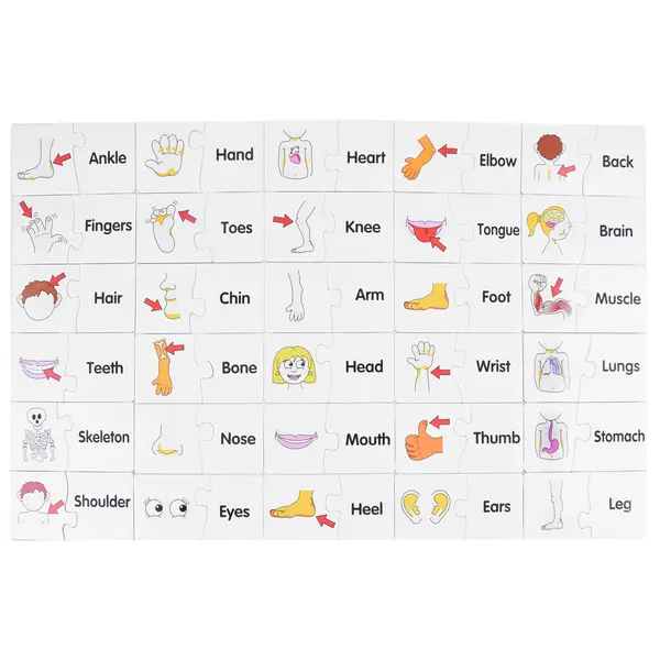Angol testrészek oktató párosító puzzle gyerekeknek, 30 db