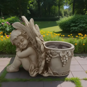 Angyalka kerti virágtartó figura – dekoratív kaspó
