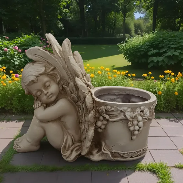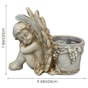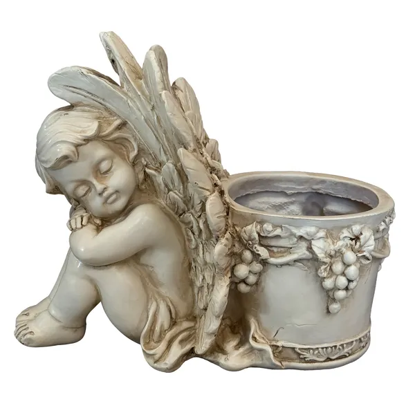 Varázsoljon meghitt, elegáns hangulatot kertjébe vagy teraszára ezzel a dekoratív angyalka virágtartó figurával. A dísz és a praktikus kaspó egyben stílusos fókuszpontot teremt, miközben kedvenc növényeit is szépen kiemeli.