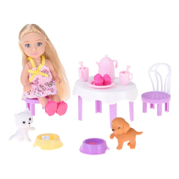 Az Ankiki baba szülinapi állatparti készlet 32 gondosan kidolgozott elemet tartalmaz, hogy a gyerekek saját miniatűr bulit rendezzenek kedvenc plüss- vagy műanyag állataiknak. A nyári ruhás baba mellé egy fehér cica és egy barna kutyus tartozik, így máris adott a barátságos társaság.