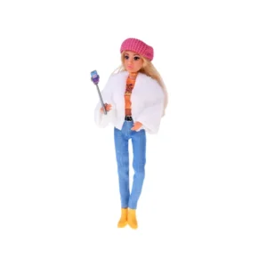 A mozgatható végtagoknak és hajlítható ízületeknek köszönhetően sokféle pózba állítható, így remek társ fotózós, szerepjátékos történetekhez. A téli szettet a fehér műszőr bunda, a széles rózsaszín fejpánt és a divatos bokacsizma teszi teljessé – a kiegészítőkkel pedig igazi „offline” influencer élményt ad, képernyő nélkül.