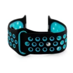 A puha, vízálló szilikon szíj sportos fekete–türkiz stílust és kényelmes viseletet ad Apple Watch órádnak. Ezüstszínű fémcsatja biztos tartást kínál akár edzés, akár hétköznapi használat közben.
