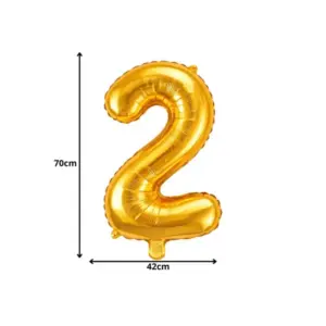 Az arany színű, 2-es szám alakú fólia lufi látványos kiegészítő születésnapokra, évfordulókra, jubileumokra és bármilyen ünnepi alkalomra. Elegáns megjelenése miatt remekül mutat otthon, rendezvényteremben vagy a kertben, és kiváló fotóháttérként is.