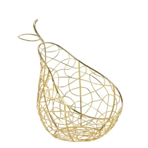Elegáns aranyszínű fémkosár körte formában, amely feldobja a konyha vagy nappali megjelenését, miközben rendszerezi a gyümölcsöket és apróságokat. A 2 darabos csomag több helyiséget is stílusosan díszít, karcmentes talpának köszönhetően pedig óvja a bútorokat.