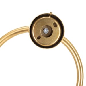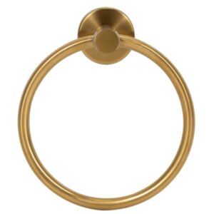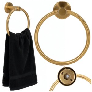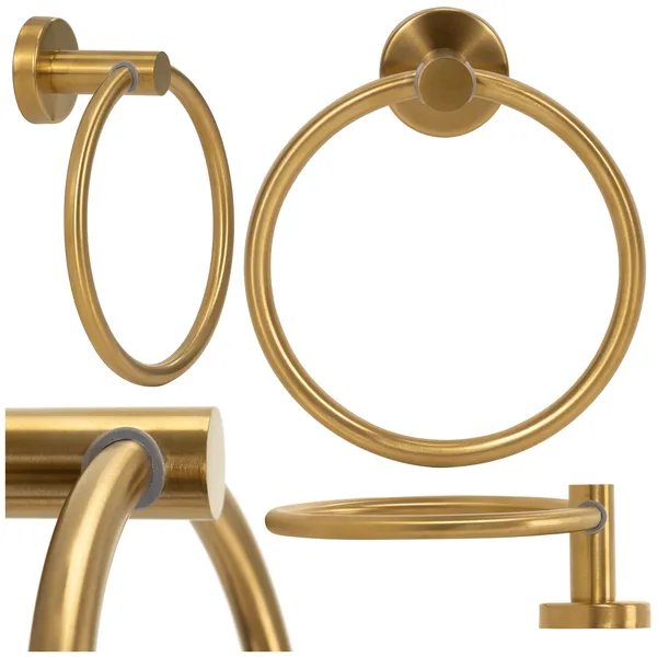 Elegáns, arany fényes törölközőtartó gyűrű, amely rendezetté teszi a fürdőszobát és kényelmesen elérhető helyen tartja a törölközőt. Rozsdamentes acél kivitelének köszönhetően tartós, a falra rögzíthető megoldás stabil tartással és egyszerű szereléssel.