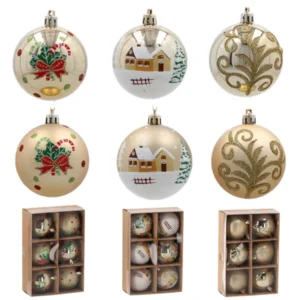 Ezzel a 6 darab arany, 7 cm-es gömbből álló készlettel pillanatok alatt egységes, elegáns csillogást vihetsz a karácsonyfádra. A törésbiztos műanyag kivitelnek köszönhetően a díszek biztonságosan élvezhetők gyerekek és házi kedvencek mellett is.