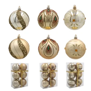 Az arany színű gömbdíszek klasszikus, mégis elegáns hangulatot teremtenek a karácsonyfán.