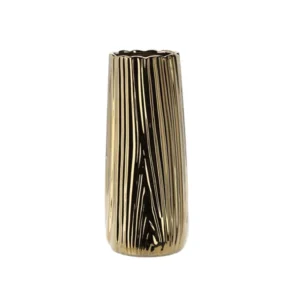 Az arany színű, letisztult vonalú kerámia váza bármely enteriőr kifinomult fókuszpontja lehet. 10×10×25 cm-es méretének köszönhetően tökéletes választás asztali, polcos vagy konzolasztali dekorációhoz, miközben keskeny formája kevés helyet foglal.