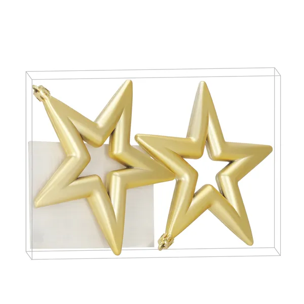 Arany matt műanyag csillag karácsonyfadísz, törhetetlen, 14 cm, 2 db